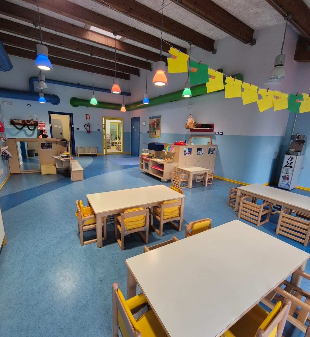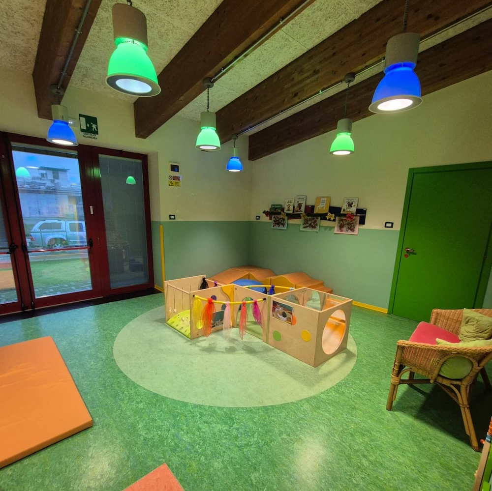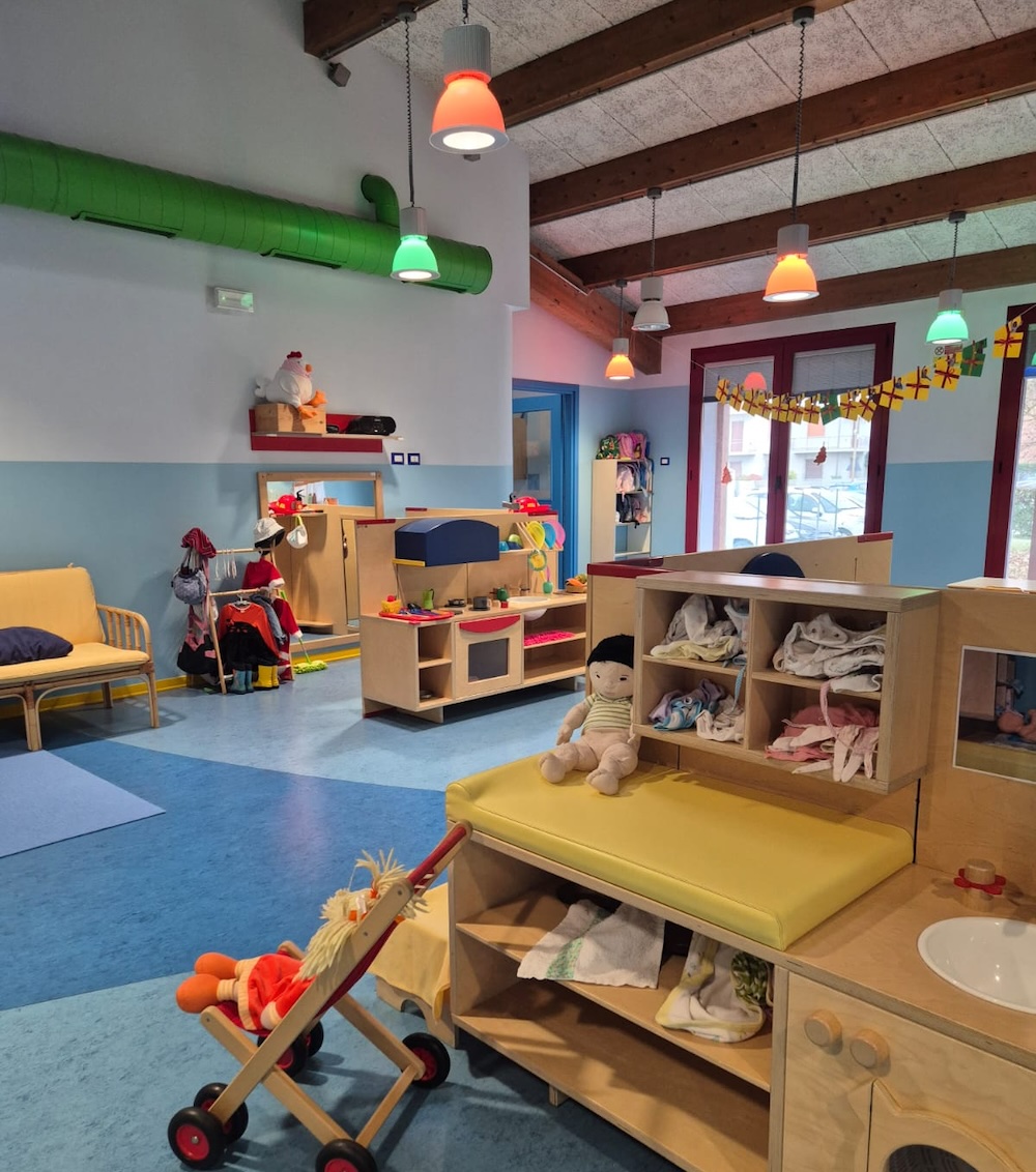 Il nido dispone di spazi interni ed esterni organizzati in modo flessibile e progettati per garantire a ogni bambino/a esperienze di crescita personale e relazionale.