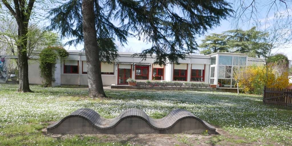 L’edificio si trova nelle immediate vicinanze dell’ufficio postale e del parco comunale di Quistello. Si sviluppa su un unico piano ed è circondato interamente da un ampio giardino a uso esclusivo ricco di elementi in grado di stimolare la curiosità e la motricità dei bambini\e. Tra questi, un labirinto di ibisco, alberi da frutto, piante rampicanti dalle differenti fioriture e profumazioni, un angolo dedicato alla coltivazione di erbe aromatiche, un terrario e un parco giochi con scivolo dotato di tappeto smorza cadute.