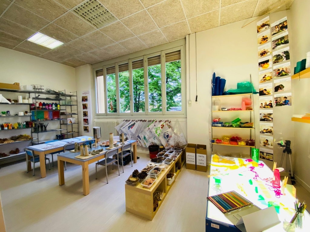Oltre al grande atelier dei linguaggi espressivi al piano terreno, ogni sezione è dotata di un mini atelier.