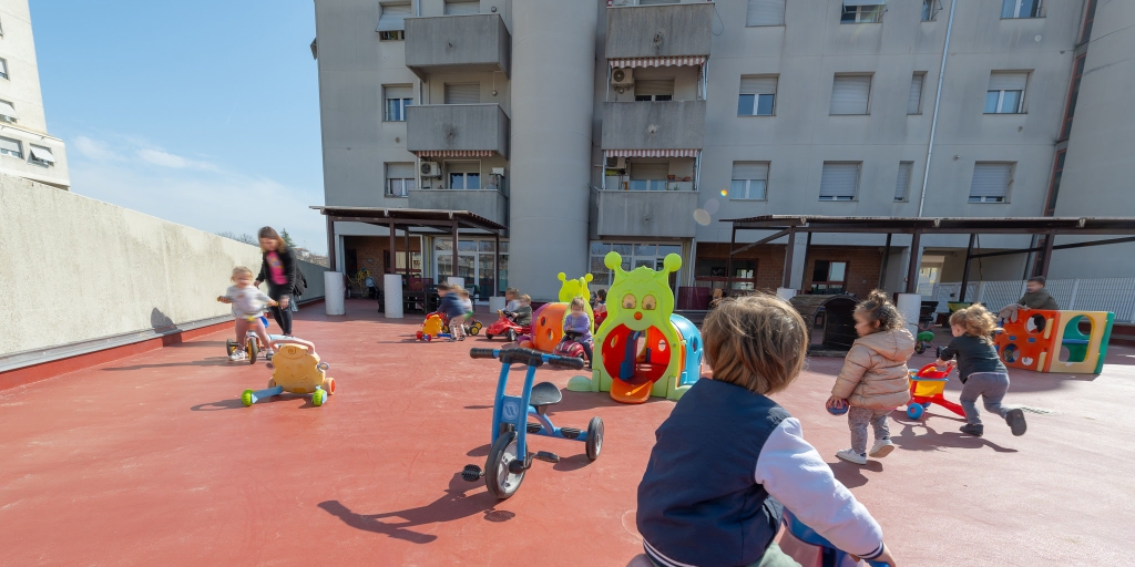 Il servizio si distingue per la presenza di un’ampia terrazza a uso esclusivo e utilizzata come spazio di gioco, di un atelier (un ambiente che promuove conoscenza e creatività) e di ambienti ricchi di materiali di recupero in grado di stimolare la creatività dei bambini\e.